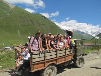 Uszguli - dalsza jazda do lodowca - 50 osób na "łazie"! |