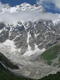 Szchara - góra (5.068 m) z widocznym językiem lodowca i pełno cudownych kwiatów. |