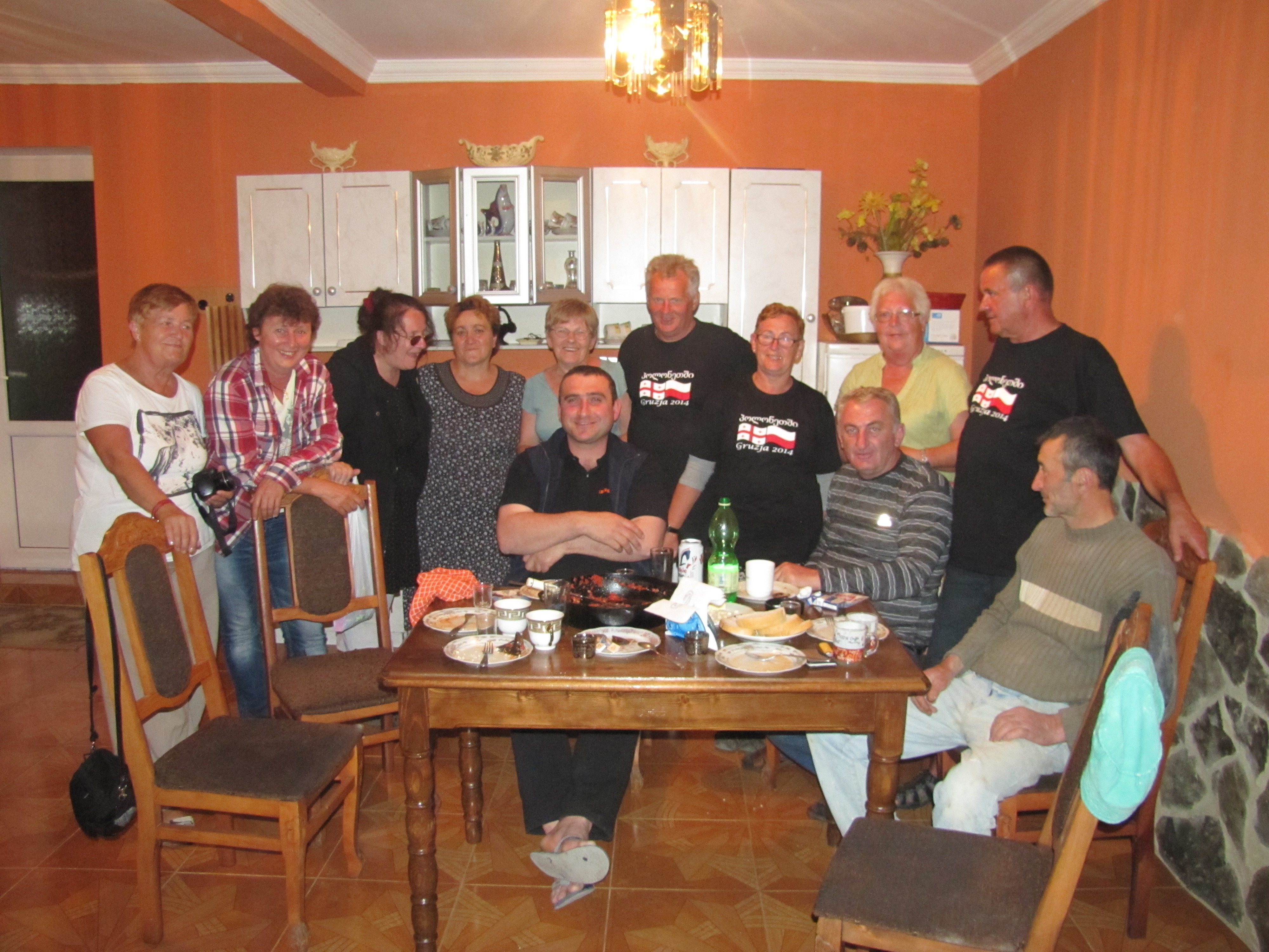 Trzcianecka grupa w koszulkach polsko-gruzińskich. Od lewej: Edwin Klessa, Anna Hlebionek, Elżbieta Żydowicz, Adam Kłundukowski, Anna Jabłońska, Albina Szczudło, Jadwiga Witkowska, Adam Mikulski.